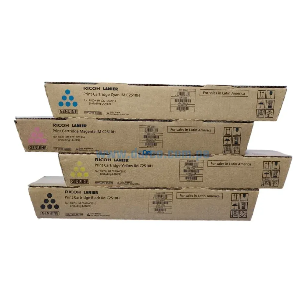 Cartuchos de toner ricoh IM C2010 / C2510, vienen con un chip inteligente insertado en los cartuchos, la cual contabiliza las impresiones que usted realiza, de igual manera el código del tóner se encuentra grabado en los cartuchos, en modo de alto relieve, que vendría a ser su identificador como producto original de la marca RICOH.