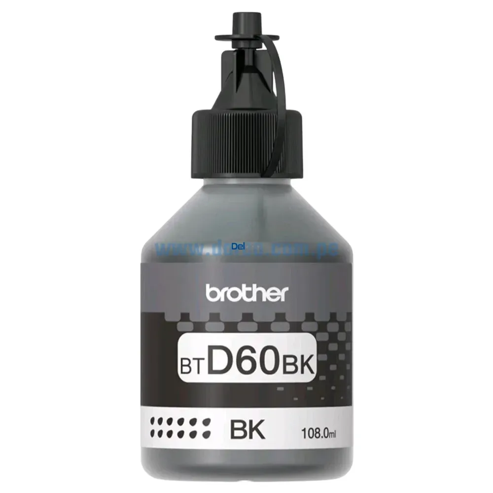 La Botella De Tinta Brother BTD60BK Black. Tiene Un contenido de 108 mililitros, Recuerda que el rendimiento real puede variar considerablemente en función del contenido de las páginas impresas y otros factores.