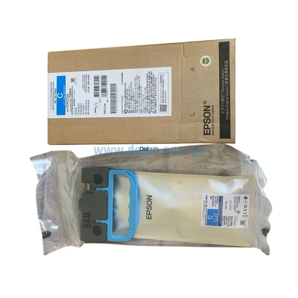 Bolsa De Tinta Original Epson T05A200 Cyan. Tiene Un Rendimiento De 20.000 Paginas, ideal para impresiones de gran volumen, Está formulada para impresión de alta velocidad y ofrece texto e imágenes de calidad profesional y colores brillantes. Recuerda que el rendimiento real puede variar considerablemente en función del contenido de las impresiones y otros factores.