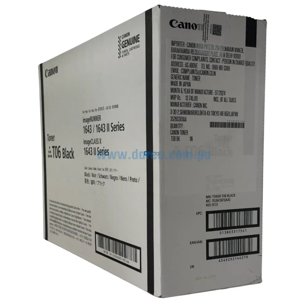 Toner Canon T06 imageRUNNER 1643if / 1643i / 1643P Negro 20.500 paginas |
